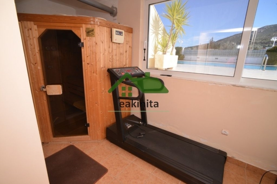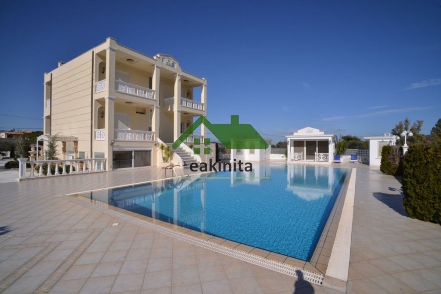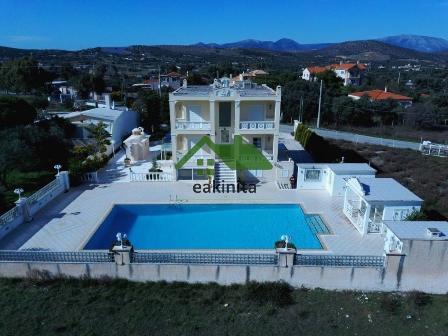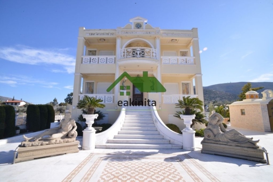 ΠΩΛΕΙΤΑΙ Βίλα Νεοκλασικό 300 τ.μ., σε οικόπεδο 1500 τ.μ., 3 επιπέδων (ισόγειο-1ου-2ου), με θέα στο βουνό στην περιοχή Γαλάζια Ακτή στα Καλύβια Θορικού. Είναι κατασκευής του 2003 και αποτελείται από 1 σαλονοκουζίνα (με εντοιχισμένες ηλεκτρικές συσκευές), 1 αυτόνομη κουζίνα (με εντοιχισμένες ηλεκτρικές συσκευές), 3 Υ/Δ (το 1 master με μεγάλη ντουλάπα, μπάνιο με υδρομασάζ και τζάκι), 3 μπάνια, 1 wc, 1 γυμναστήριο, 1 γραφείο και βεράντες. Είναι βαμμένο και διαθέτει εσωτερική σκάλα, κουφώματα αλουμινίου με διπλά τζάμια και ηλεκτρικά ρολά, σίτες, θυροτηλεόραση, συναγερμό, αυτόνομη θέρμανση πετρελαίου, boiler, 2 τζάκια, σάουνα και δάπεδα επενδυμένα με πλακάκια. Επίσης διαθέτει χώρο στάθμευσης 150 τ.μ. για 6-7 αυτοκίνητα με αυτόματη συρόμενη πόρτα και 2 αποθήκες. Εξωτερικά περιβάλλεται από κήπο 600 τ.μ. με εκκλησία και ο χώρος της πισίνας είναι 350 τ.μ. και περιλαμβάνει BBQ, περίπτερο και ντουζιέρα. Δεν έχει κοινόχρηστα. Ιδανική κρίνεται η τοποθεσία του καθώς βρίσκεται 3 χλμ. από το Λαγονήσι και τη θάλασσα και είναι κοντά σε ΜΜΜ, κεντρικούς οδικούς άξονες, χώρους εστίασης, παραλία κ.α. Το στίγμα στο χάρτη είναι ενδεικτικό και δεν υποδεικνύει την ακριβή θέση του ακινήτου. site: www.eakinita.com, Τηλ. Επικοινωνίας: 211.117.1895, email: info@eakinita.com ID.6592